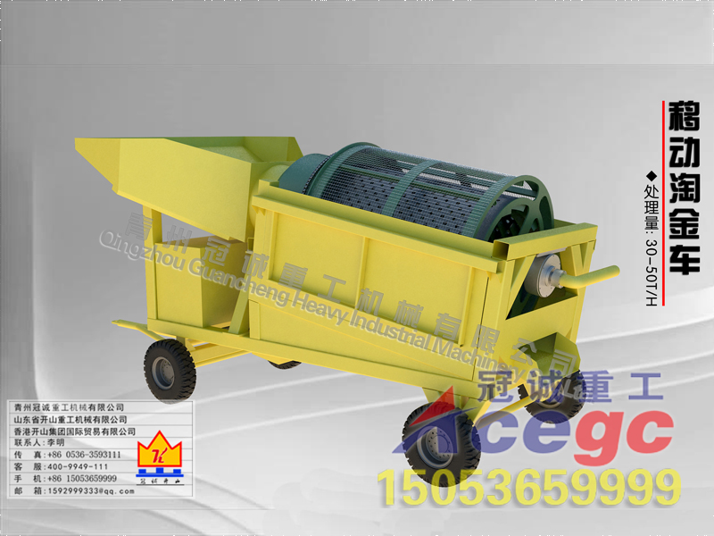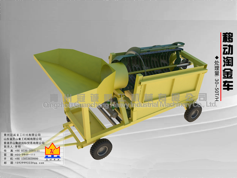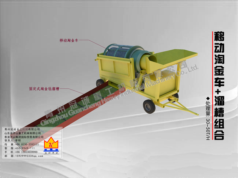 小型移動重選礦設備是青州冠誠重工機械有限公司獨立設計、研發制作,通過售后服務、用戶回訪等渠道不斷完善改進,現已經成為一種先進成熟的移動式重選淘金設備;